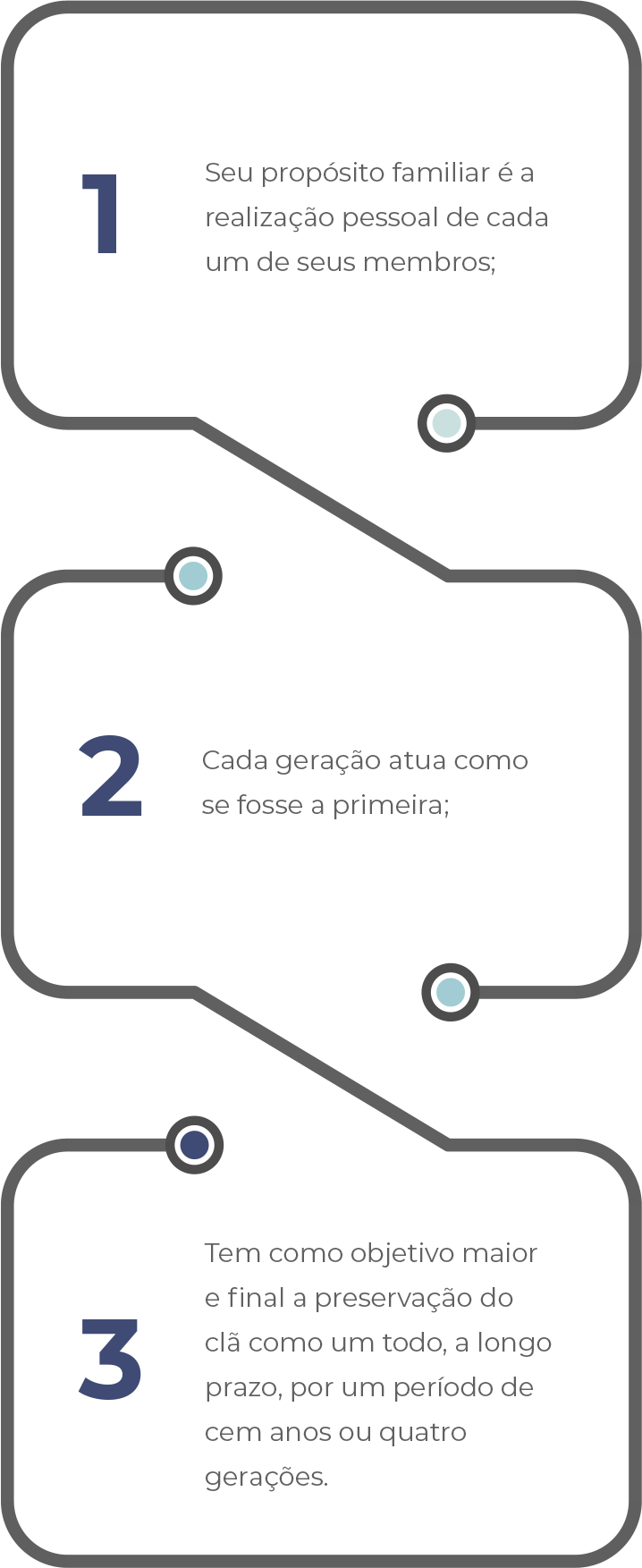 Especialistas em “gerenciamento de riquezas” apontam causas diferentes para o sucesso e o fracasso da perpetuação do legado familiar. Em minha experiência no Brasil, creio profundamente que uma família progride verdadeiramente quando: